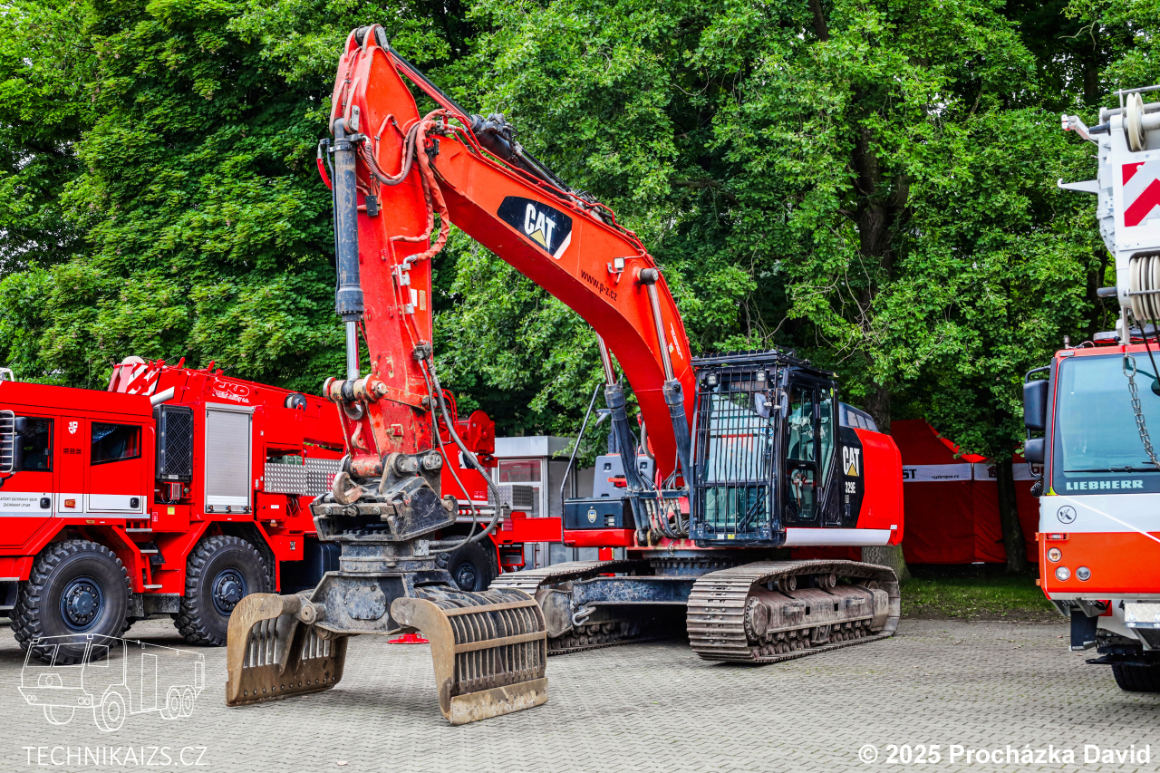 Doplňující info:Stroj je poháněn výkonným přeplňovaným šestiválcovým motorem CAT C7.1 s technologií ACERT. Tento motor o objemu 7,1 litru dosahuje výkonu 152 kW. Hydraulický systém typu Cross Sensing je vybaven dvěma pístovými čerpadly s proměnlivým průtokem. Tato čerpadla zajišťují plynulý a efektivní chod výložníku, násady, lžíce a pojezdu rypadla. Výkon čerpadel se automaticky přizpůsobuje aktuálnímu pracovnímu zatížení, čímž se zvyšuje celková účinnost systému a snižuje spotřeba paliva. Kromě toho je stroj vybaven přídavnými vysokotlakými a středotlakými hydraulickými okruhy pro připojení příslušenství, jako jsou kladiva, nůžky nebo otočné hlavice. Zvláštní pozornost byla věnována systému rekuperace energie. Tento systém, nyní řízený elektronicky, umožňuje při spouštění výložníku vracet olej vytlačený z válce zpět do opačné strany téhož válce místo do nádrže. Tím se odlehčuje hydraulickým čerpadlům a motor může pracovat s nižšími otáčkami – přibližně o 100 ot/min – bez ztráty výkonu. Pro případ poruchy jsou integrovány dva elektronické záložní řídicí systémy, které umožňují pokračování v práci i při výpadku některých funkcí řízení hydrauliky nebo otáček motoru, čímž se zvyšuje provozní jistota stroje. Kabina stroje je navržena s důrazem na komfort obsluhy. Je nezávisle vytápěná, vybavená přetlakovým větráním a klimatizací. Vzduchem odpružené a vyhřívané sedadlo přispívá k pohodlí při dlouhodobém provozu. Pro zvýšení bezpečnosti je k dispozici monitor, který zobrazuje pohled za stroj pomocí integrované kamery. Součástí dodávky stroje bylo následující příslušenství: Podkopová lopata o šířce 1 350 mm a objemu 1,5 m³, hydraulické nůžky CAT MP 15 s čelistmi a provozním tlakem 350 barůa a demoliční drapák s objemem čelistí 900 litrů a svěrnou silou 68 kN. Celková cena stroje včetně příslušenství činila 9 147 338 Kč včetně DPH.