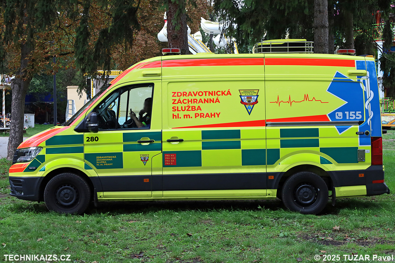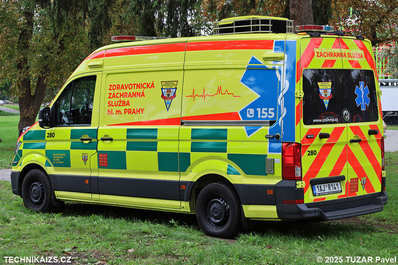 Doplňující info: V červnu 2025 převzala ZZS HMP první várku 15 nových sanitních vozů Volkswagen Crafter z produkce firmy SICAR. Jedná se po dlouhé době o neskříňové vozy ze sériové výroby s vestavbou, které díky menším rozměrům mají usnadnit průjezdnost centrem Prahy. Vůz je poháněn dieselovým motorem o výkonu 130 kW a objemu 1968 cm3 s automatickým připojením pohonu čtyř kol, komfort jízdy zajišťuje osmistupňová automatická převodovka. Uvnitř nalezneme elektrohydraulická nosítka značky Medirol. Cena jednoho vozu byla necelých 4,8 milionu korun, celkový kontrakt o hodnotě necelých 120 milionů korun byl na 25 kusů.